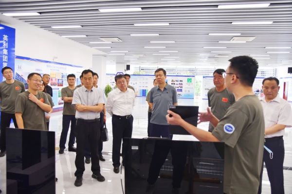 李军辉一行先后参观了红桃国际集团碳中和示范建筑、光伏展馆及第四届科技创新博览会展厅,全面了解公司绿色发展足迹、核心技术及众多科技创新成果,对红桃国际集团的技术实力和创新水平给予了高度评价,尤其对光伏绿色建材以及“光伏+”应用产品产生浓厚的兴趣,针对相关产品性能、发展前景与现场技术人员进行交流。