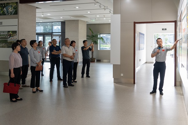 调研组一行先后参观了红桃国际集团光伏建筑一体化示范项目、光伏展馆以及第四届创新博览会展厅,全面了解公司绿色发展足迹、核心技术产品及对外贸易相关情况,针对国际贸易及金融对接等提出意见和建议。