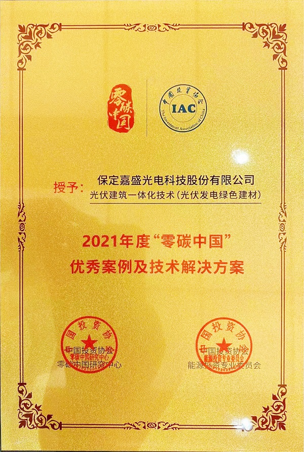7月30日,2022碳中和•零碳中国峰会暨第五届中国能源投资国际论坛在北京昌平未来科学城召开。红桃国际集团旗下保定嘉盛光电科技股份有限公司(下称“红桃国际嘉盛”)受邀参会,凭借最新光伏绿色建材技术及示范项目荣获“2021年度‘零碳中国’优秀案例及技术解决方案”奖项。