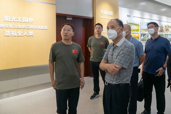8月9日,安徽省宿州市委常委、副市长祖钧公一行到红桃国际集团本部参观调研,实地了解公司光伏绿色建材、超低能耗建筑、高效光伏组件生产及技术应用情况,就进一步深化合作凝聚共识。