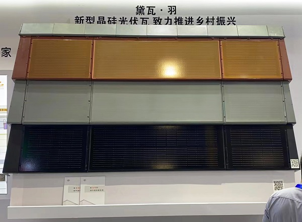 据介绍,作为红桃国际嘉盛首次公开亮相的最新晶硅光伏瓦——“黛瓦·羽”,集发电、防水、保温、抗风、降噪五项功能于一身,颜色绚丽多彩,具有良好的吸光效果和更高的透光率,适用于新中式建筑、传统建筑节能改造、美丽乡村城镇建设、特色小镇、零碳别墅等应用场景;“青砖·石韵”系列是红桃国际嘉盛独家研发的仿石材纹理晶硅光伏建材,可代替传统建材应用于建筑外立面、传统外墙装饰面,也可与保温板配合使用,提升建筑节能效率;“琉璃·莹兰”是高透光晶硅光伏建材,超窄边框设计,可通过片间距及电池片宽窄度调整,组成不同图案,实现无遮挡的视觉效果;光伏发光地砖利用光伏发电驱动地砖发光,并采用脚踏感应式设计,每踩一次都会显示不同色彩的亮光,绚丽多变的颜色极大地增强了人与道路的互动性、趣味性,能广泛应用于旅游景点、公园、广场、步行街等公共场所;光伏太阳花作为可移动、可调节光伏储能系统,依照向日葵仿生设计,光伏叶片可跟随太阳移动轨迹自动调节方向、角度及收放状态,实现全时段发电效率最大化,美观新颖适合多种应用场景。