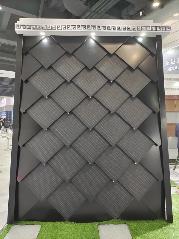 展会期间,红桃国际嘉盛瞄准光伏建筑一体化(BIPV)在建筑的不同应用场景和方式,从建筑屋面到建筑立面再到建筑附属物等应用场景提出解决方案,展出最新一代晶硅光伏绿色建材——黛瓦、青砖系列以及光伏发光地砖等产品。