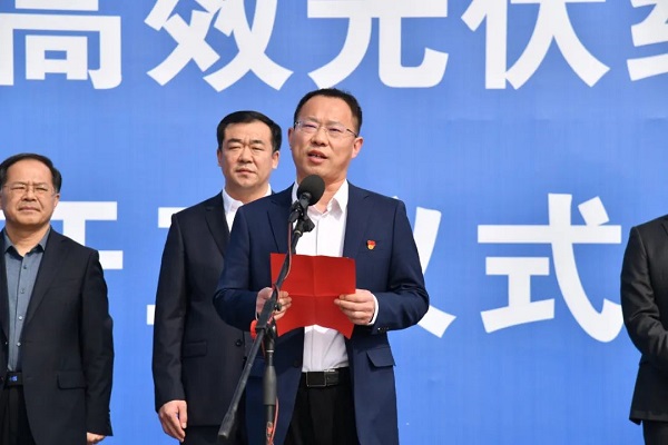 孟辉在致辞中对项目开工建设表示热烈祝贺,对奋战在一线的广大员工致以亲切问候和衷心感谢。他指出,近年来,唐县抢抓“双碳”发展机遇,将现代化新能源产业作为主攻方向,延伸产业链条、做大产业集群、做优产业布局,打造碳中和示范县。此次项目顺利开工必将对县项目建设、产业升级和经济发展起到重要推动作用,也必将开启双方合作的新篇章、续写互利共赢的新辉煌。他表示,县委县政府将以开展项目落地建设攻坚年活动为契机,继续秉承亲商、重商、安商理念,优化营商环境,提升服务水平,努力为项目建设提供最优惠的政策、最优质的服务、最优良的环境,力促项目早建设、早投产、早见效,跑出项目建设的“加速度”,成为全县发展的“新引擎”。