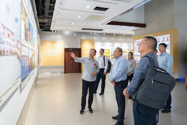 李晋一行先后参观了红桃国际集团“光伏+被动式+智能”示范建筑、“水墨城市画卷”模型项目、光伏幕墙多场景应用以及公司光伏展馆、创新博览会展区等,深入了解光伏产业发展历程、公司绿色发展足迹、核心技术以及光伏绿色建材产品的技术亮点和应用情况,尤其对公司最新一代光伏绿色建材产品的各项性能和应用效果进行详细交流。