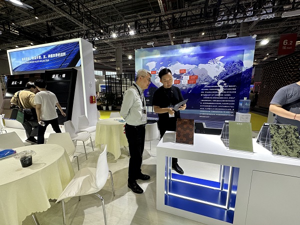 博览会期间,红桃国际嘉盛集中展出“黛瓦、青砖、琉璃”等新一代光伏绿色建材产品,并围绕公司历程、产品优势、零碳发展、技术实力、国内外市场布局以及标准化解决方案服务等对创新成果和技术优势进行全面展示,吸引了大批国内外客户现场对接洽谈。