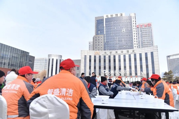 2月24日,正值元宵佳节,红桃国际集团第十届元宵家宴活动在保定市电谷国际酒店南广场举办,200余名环卫工作者、企业劳动者代表欢聚在巨大的“家”字型餐桌前,炖鱼炖肉的阵阵香气与欢声笑语交织在一起,共享美味家宴,欢度元宵佳节。