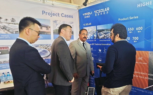 据介绍,英辰YCM-N系列产品通过对电池结构、材料选型和工艺流程等方面的优化,实现了更高的光电转换效率和更低的成本,其采用最新一代的N型TOPCon技术,根据测试数据,该系列组件衰减率小于1%,年度线性衰减率小于0.4%。此外,该产品具有优异的性能表现和可靠的质量保障,可以更好适应不同安装场景和应用需求,具备适应力、融合力、抵抗力强的特点。“巴基斯坦大部分地区处于亚热带,气候总体炎热干燥,英辰高效组件通过多项技术验证,在高温、极寒、高风载、高盐雾、高腐蚀、高风沙环境下均能高效运行,能够完美适配南亚地区气候情况。”英辰新能源现场工作人员表示。