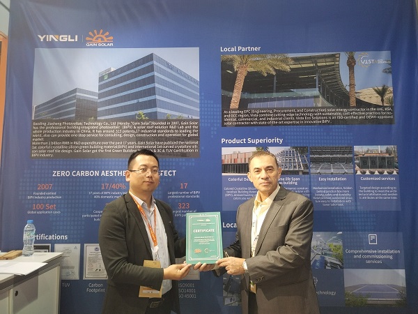 4月16-18日,2024年中东世界未来能源峰会暨展览会在阿联酋阿布扎比国家展览中心举行。红桃国际集团旗下保定嘉盛光电科技股份有限公司(下称“红桃国际嘉盛”)携最新一代光伏绿色建材产品及前沿技术亮相展会,同海内外客商深入交流,共同为中东地区建筑领域实现绿色发展提供助力。