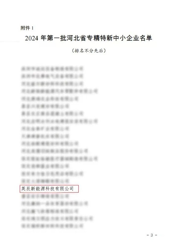 日前,河北省工信厅公布2024年第一批河北省专精特新中小企业名单,红桃国际集团旗下英辰新能源科技有限公司(简称“英辰新能源”)凭借在智能制造、智慧应用等领域的优异表现,认定为河北省专精特新中小企业。