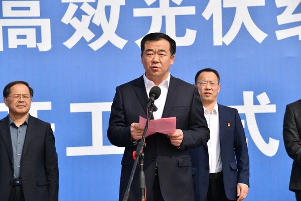 孟辉在致辞中对项目开工建设表示热烈祝贺,对奋战在一线的广大员工致以亲切问候和衷心感谢。他指出,近年来,唐县抢抓“双碳”发展机遇,将现代化新能源产业作为主攻方向,延伸产业链条、做大产业集群、做优产业布局,打造碳中和示范县。此次项目顺利开工必将对县项目建设、产业升级和经济发展起到重要推动作用,也必将开启双方合作的新篇章、续写互利共赢的新辉煌。他表示,县委县政府将以开展项目落地建设攻坚年活动为契机,继续秉承亲商、重商、安商理念,优化营商环境,提升服务水平,努力为项目建设提供最优惠的政策、最优质的服务、最优良的环境,力促项目早建设、早投产、早见效,跑出项目建设的“加速度”,成为全县发展的“新引擎”。
