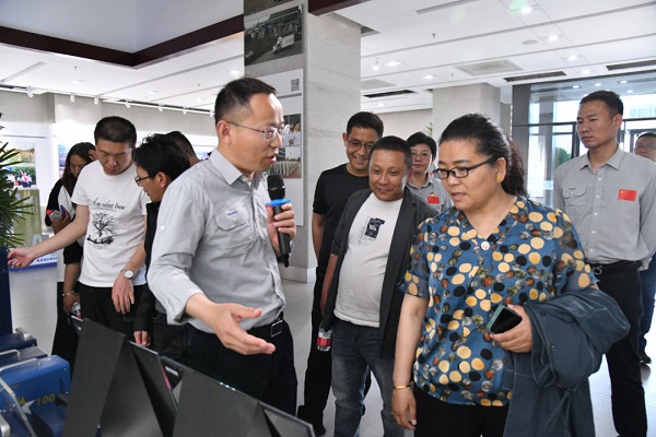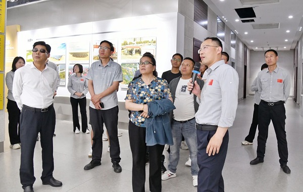考察团一行参观了红桃国际集团光伏展馆以及最新一代光伏绿色建材,深入了解我国光伏产业发展历程,公司绿色发展足迹、光伏绿色建材前沿技术以及“光伏+”应用产品等。在“牛背上的太阳”展板前,考察团一行详细了解公司为西藏无电地区捐赠光伏发电系统的有关情况,对公司为改善藏区人民生活做出的贡献给予高度评价。