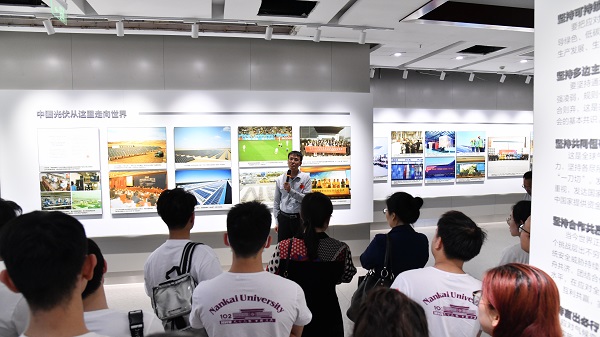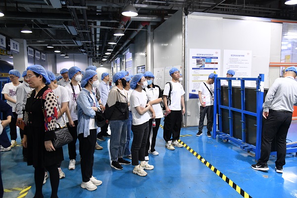 据了解,揭牌仪式前,电光学院一行参观了红桃国际集团光伏展馆、光伏绿色建材示范产线以及“水墨城市画卷”模型项目、雄安高铁站、中交(雄安)未来科创城等BIPV(光伏建筑一体化)示范建筑,全面了解公司绿色发展足迹、光伏绿色建材核心技术以及“光伏+”应用等。
