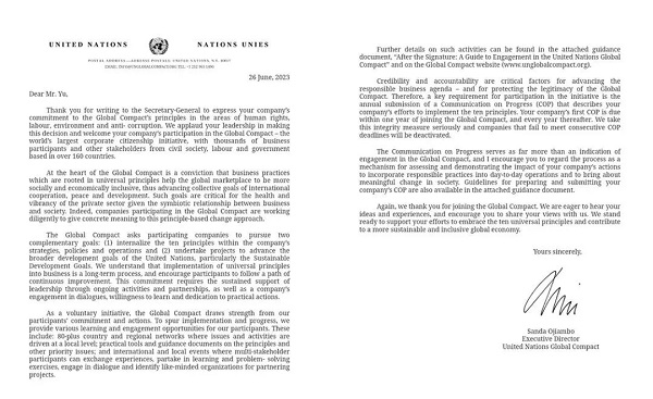 “很荣幸能够加入联合国全球契约组织,这不仅是对公司承担社会责任的高度肯定,也是公司不断扩大国际影响力的又一重要里程碑。”英辰新能源总经理于矗卓表示。