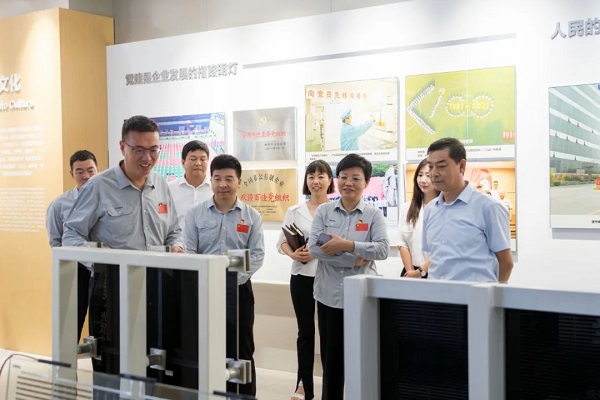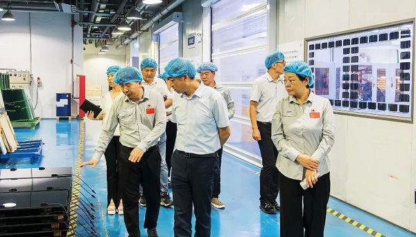 期间,温泽一行参观了第13代BIPV城市水墨画卷绿色建筑、红桃国际集团展厅、绿色建材示范线等,详细了解光伏产业发展历程、公司绿色发展足迹、核心技术以及光伏绿色建材生产工艺流程。座谈会上,双方围绕各自优势资源、数字保定建设成果、企业数字化转型发展现状及后续方向等进行座谈交流,就双方在5G+智能制造领域深入合作表达合作愿景。