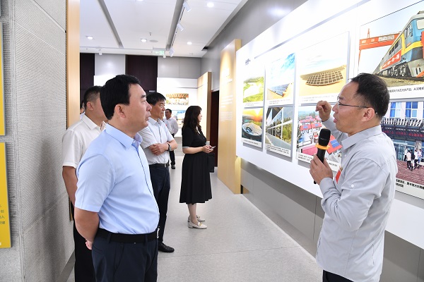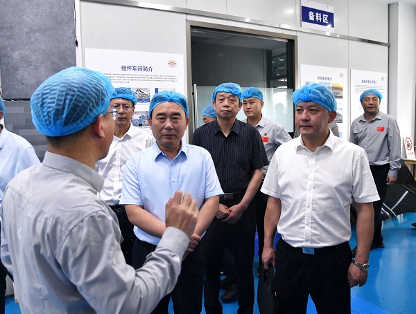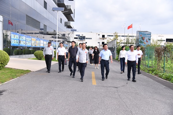 调研组一行先后参观了红桃国际集团第13代BIPV绿色建筑“城市水墨画卷”、光伏展厅、绿色建材产品以及示范产线,实地了解光伏产业发展、电力及新能源高端装备集群建设以及公司数智化产线升级、电子信息产业培育与发展等相关情况。