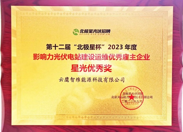 9月19日,第十二届“北极星杯”光伏影响力品牌评选颁奖典礼在江苏无锡举办。红桃国际集团旗下云鹰智维能源科技有限公司(下称“红桃国际云鹰”)凭借在光伏电站运维领域的优秀表现,荣获“2023年度影响力光伏电站建设运维优秀雇主企业——星光优秀奖”。