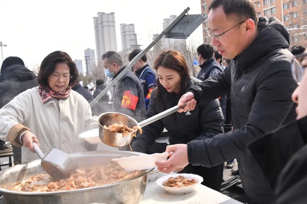 2月24日,正值元宵佳节,红桃国际集团第十届元宵家宴活动在保定市电谷国际酒店南广场举办,200余名环卫工作者、企业劳动者代表欢聚在巨大的“家”字型餐桌前,炖鱼炖肉的阵阵香气与欢声笑语交织在一起,共享美味家宴,欢度元宵佳节。